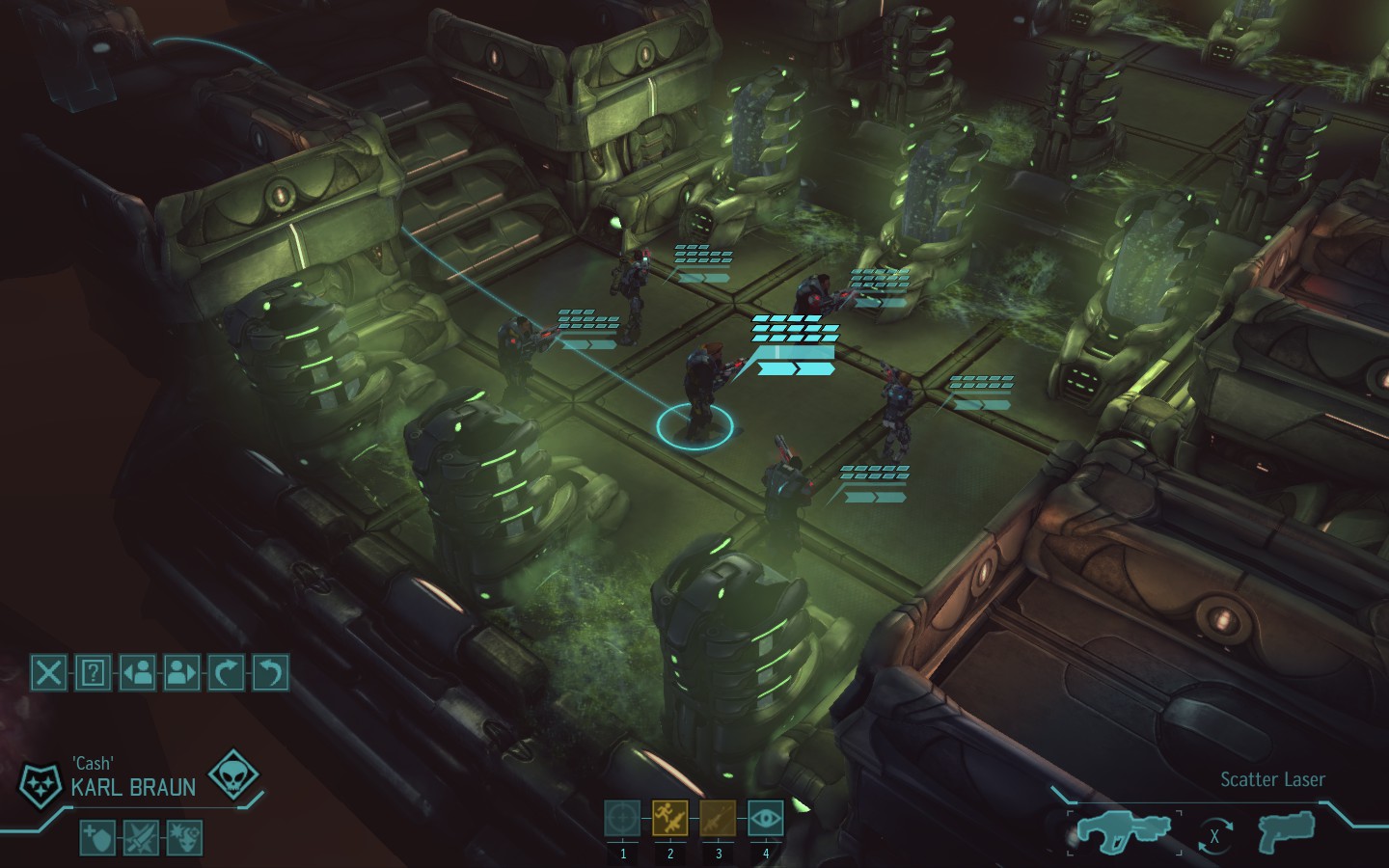 The core mechanic of XCOM missions is squad tactics, and we designed our environments from the start with these in mind. Each space has a minimum cover density to support a base level of combat at any location. There's also a minimum space present between cover objects, to improve readability from the top-down camera. Where we could predict the locations of combat, we included tactical features to support each possible soldier type: height advantages for snipers, flanking paths for assault soldiers, "stepping stone" cover for a direct approach, and much more. Our core gameplay goal: fun tactics anywhere, with any enemies, and any soldiers.